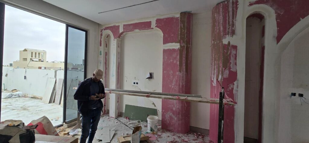 كما يتم تنفيذ أعمال العزل المائي والحراري للأسطح والخزانات، وهي من أهم الخطوات التي تحمي المبنى من تأثير العوامل البيئية القاسية في الرياض، وتساعد في تقليل استهلاك الطاقة والحفاظ على راحة السكان داخل المنزل.